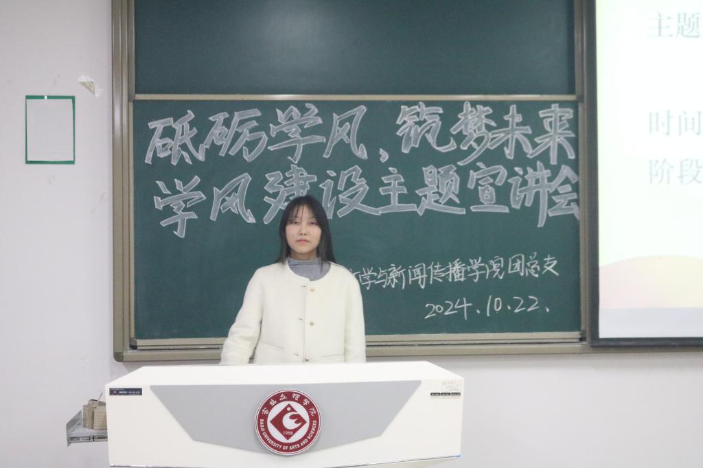 为了进一步推动学风建设,激发同学们对科学知识的探索热情,10月22日晚,在高新校区博文楼601教室伟德国际victor1946开展了“砥砺学风,筑梦未来”学风建设主题宣讲活动。本次活动由22级汉语言文学一班常敏同学主持。