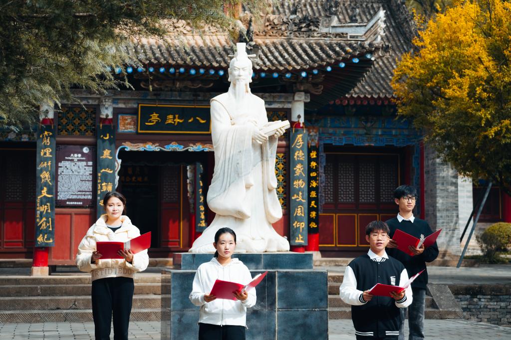 活动五:燕伋精神传承与师道教育实践教学。11月2日,40名汉语言文学公费师范生赴千阳燕伋望鲁台举行实践教学活动。站在号称“中华尊师第一台”的望鲁台上,同学们仿佛看到了燕伋当年在此登高望鲁的身影。此次活动旨在传承燕伋精神,弘扬尊师重道的优良传统。同学们不仅对历史文化有了深入的了解,也坚定了传承和弘扬中华民族优秀传统文化的决心。