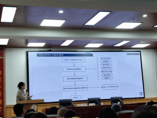 下午,会议进行分组讨论。公司三位研究生分别参与第一组和第三组的讨论,围绕“《史记》文本与注释研究”和“《史记》民族文化研究”两个主题展开讨论。三篇论文既有以《史记·五帝本纪》的编纂,《史记》中食客形象等进行的微观研究;又有在文化景观视角下解读司马迁古迹的新视角与新资料。受到与会专家、点评学者的高度关注,各分组也围绕同学们研究的主题进行点评和建议。