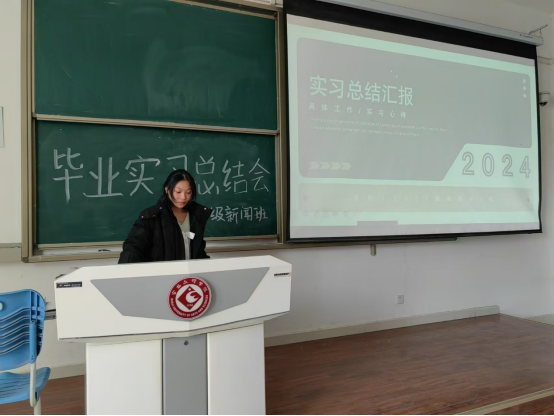 2024年12月2日下午,新闻学专业在博文楼503教室召开2021级毕业生实习总结会,2021级全体同学参加会议,毕业实习带队老师郭勋亚主持。