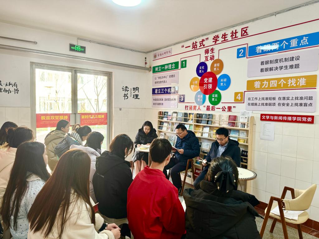 从少年时期的读书经历谈起,孟改正为师生分享了他的读书历程——少年读小说,青年读人文丛书,成年读学科系列,推荐同学们结合自己兴趣爱好阅读文学、哲学、社会学、艺术类等书籍。他认为读书是人一生的追求,希望同学们养成终身学习的习惯,不断提高阅读素养和读书品味,不断激发学习热情和文化渴求,建立高品质的精神文化生活。