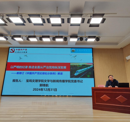 2024年12月31日下午,公司党委书记郭锋航受邀前往宝鸡高新第十小学做党纪学习教育专题报告。报告会由宝鸡高新第十小学董事长兼党支部书记李少春主持。