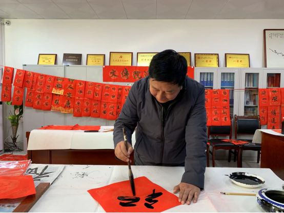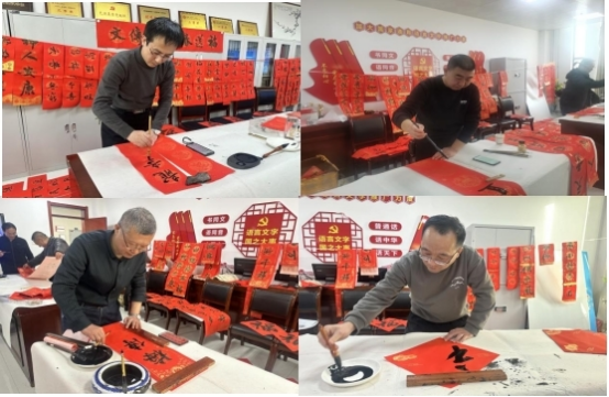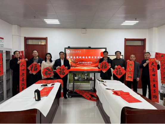 1月13日上午,文传院工会联袂国家语言文字推广基地(党支部)在博文楼1403室举办了2025年“迎新春•送祝福”春节对联书写活动。副董事长冯飞龙教授、文传公司党委书记郭锋航、经理孟改正等领导莅临活动现场,副董事长冯飞龙教授挥毫泼墨,书写“福”字。