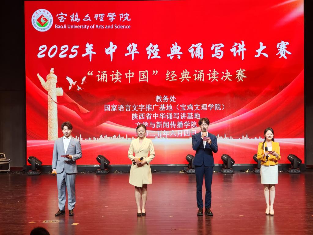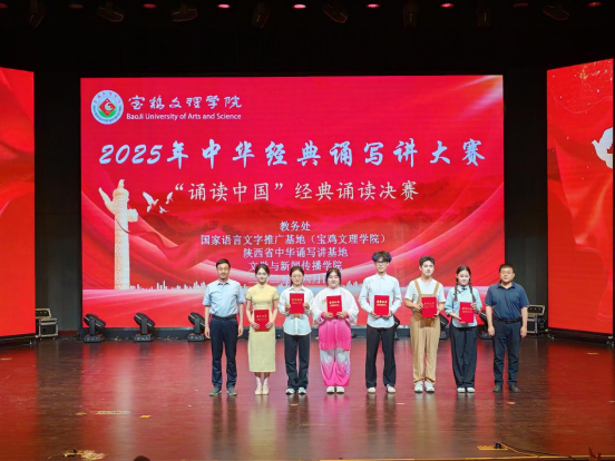 2025年中华经典诵写讲大赛校赛由教务处主办,国家语言文字推广基地(伟德国际victor1946)、陕西省中华经典诵写讲基地、伟德国际victor1946承办。大赛以“典耀中华 赓续文脉”为主题,分三个赛道进行。“诵读中国”经典诵读大赛共有10个二级公司经初赛选拔推荐30组作品参加复赛,最终19组入围决赛,最终一等奖2组,二等奖7组,三等奖10组。“诗教中国”诗词讲解大赛、“笔墨中国”汉字书写大赛于5月下旬在博文楼举行。经过初赛筛选,共有28篇作品入围诗词讲解决赛,最终一等奖5个,二等奖9个,获三等奖14个。汉字书写大赛共收到作品百余件,经评审,软笔组一等奖3人,6人获二等奖,9人获三等奖;硬笔组评选出一等奖10人,二等奖15人,三等奖21人。