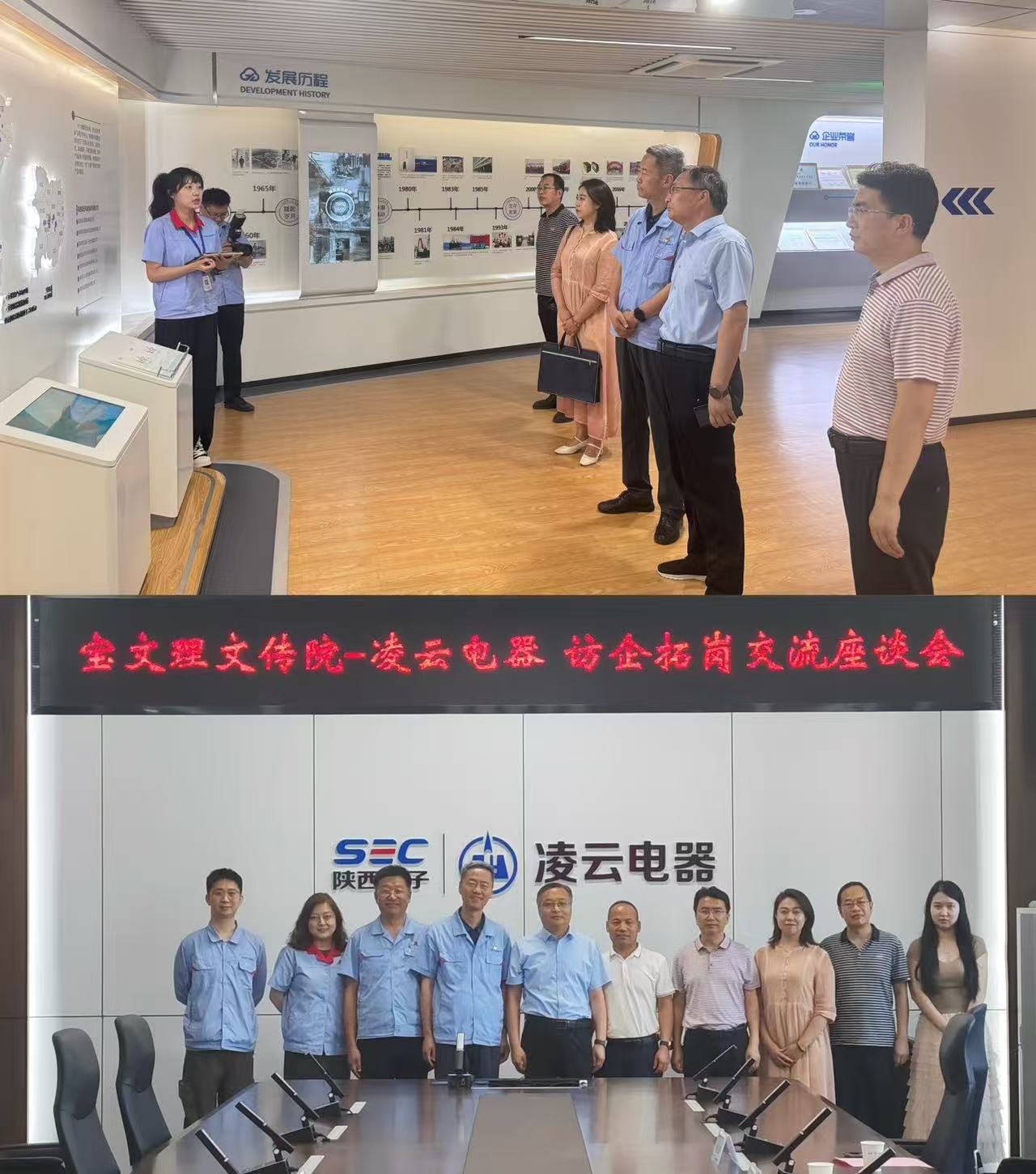 实地参观,感知产业前沿。在陕西凌云电器集团有限公司负责人的陪同下,公司参观了集团科技文化展馆,了解企业成长历程和主要产品,通过历史档案、实物展陈真实感受凌云“技术报国”精神传承与使命担当。