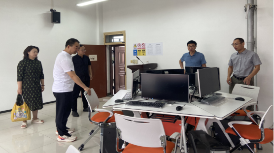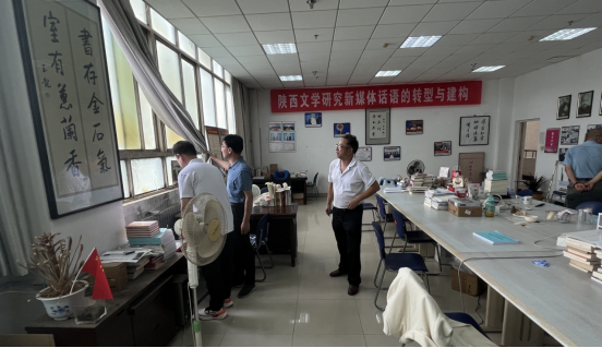 检查小组走访陕西省关陇方言与民俗中心、陕西文学研究所、现代传媒省级实验中心、智慧书法教室、教学教室等地。各基地、中心实验室负责老师介绍了使用情况和目前建设中存在的问题,并就存在问题进行了现场交流与讨论。